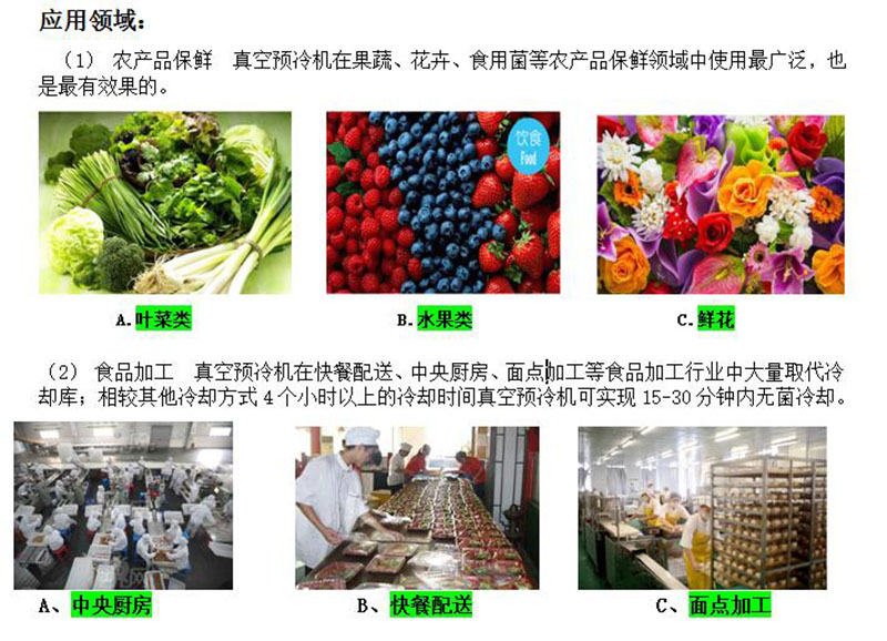 真空预冷机是运用真空预冷技术,利用真空泵抽取真空槽内空气和水蒸气以降低真空箱体内气压的冷却加工设备。在低气压下,水的沸点降低,蒸发潜热增加,被冷却物表面自由水发生汽化现象,带走自身及坏境热量,达到冷却降温效果。专门用来防止新鲜蔬菜,水果,食用菌和新鲜农作物在采摘过程中腐烂的。 冷藏运输,因此真空冷却器(真空冷却机)可以有效节约新鲜和营养价值。 真空冷却器(真空冷却机)可快速消除现场热量,延长保质期,提高质量。 实际上,蔬菜和水果的温度可以在15-30分钟内降到1℃-2℃。
